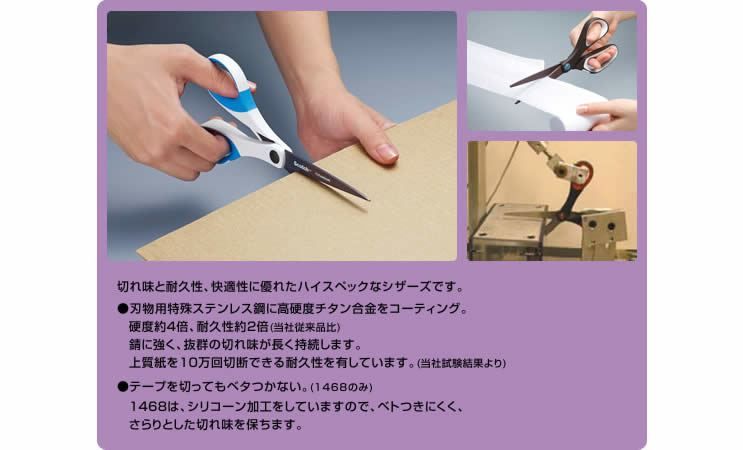 榮獲日本文具大賞*鈦金屬不沾黏事務剪刀*可剪膠帶、鋁箔、布、厚紙板、護貝紙、照片。外科手術專用刀具不鏽鋼材質:耐用10萬次。刀刃延伸至握柄內,一體成形,不會鬆脫 橡膠握柄,使用不費力。