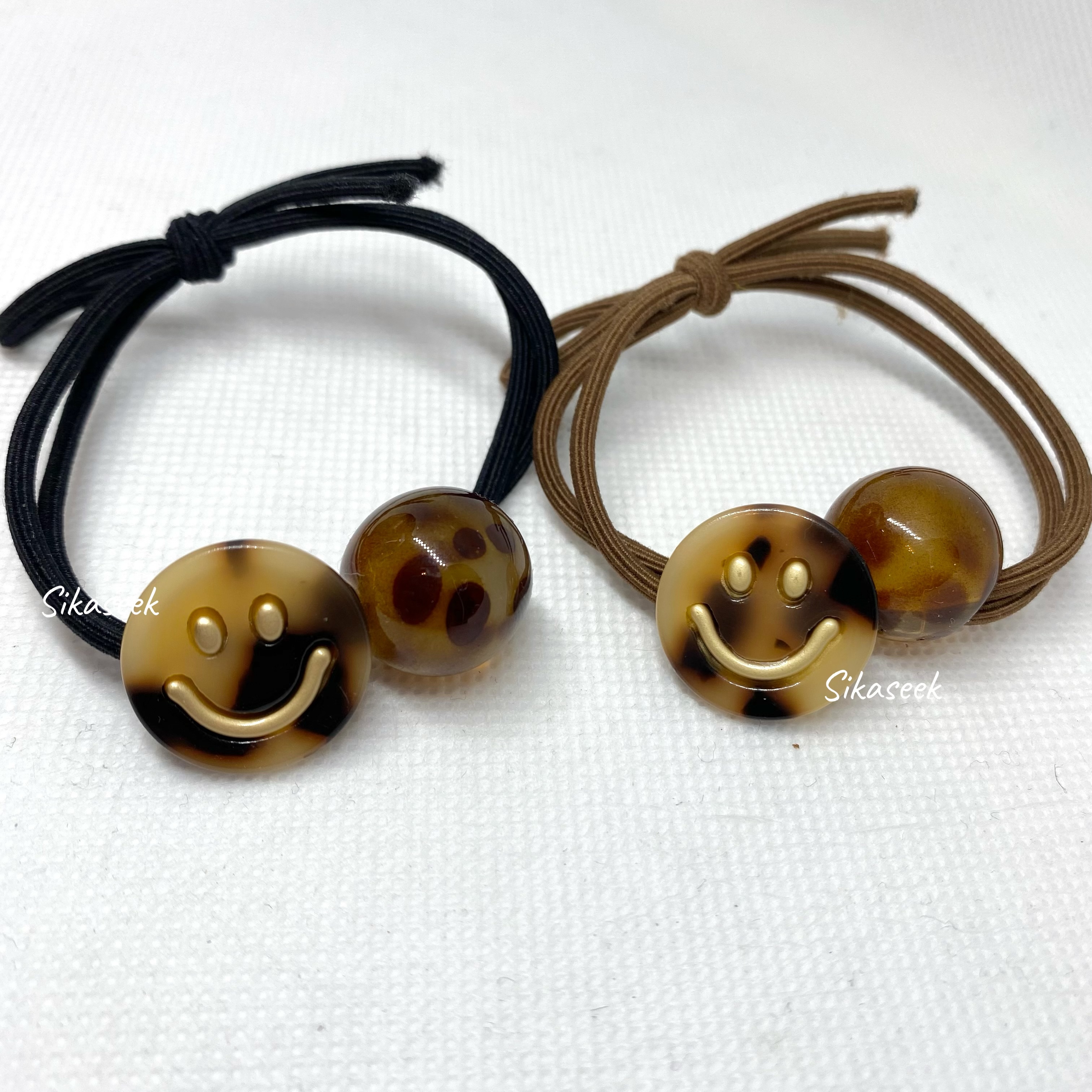 9274 豹紋 x 啡系 笑臉 圓珠頭繩