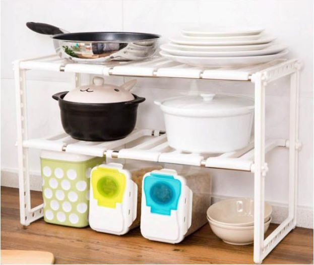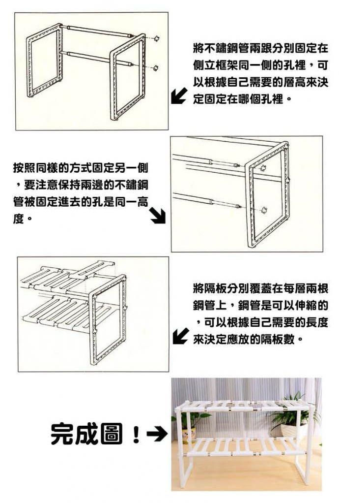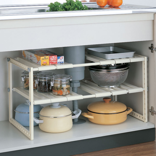 高效利用可用空間,可上下調整、左右拉伸!可拆卸式活動隔板,方便使用!一物多用,整齊又美觀!空間利用,廚房水槽下收納專用,放置板可拆,對應不同水管位置!廚房水槽下的空間不外乎是放置鍋子或其他小東西,不過花點巧思,可以讓流理台下空間更有效應用!這款【日本伸縮棚架】,可調整的高度,可依您的需求進行調整;此外,預留水管空間,讓空間應用不受水管影響。而可伸縮的設計,讓您放置物品空間更靈活!是您廚房的置物好幫手!