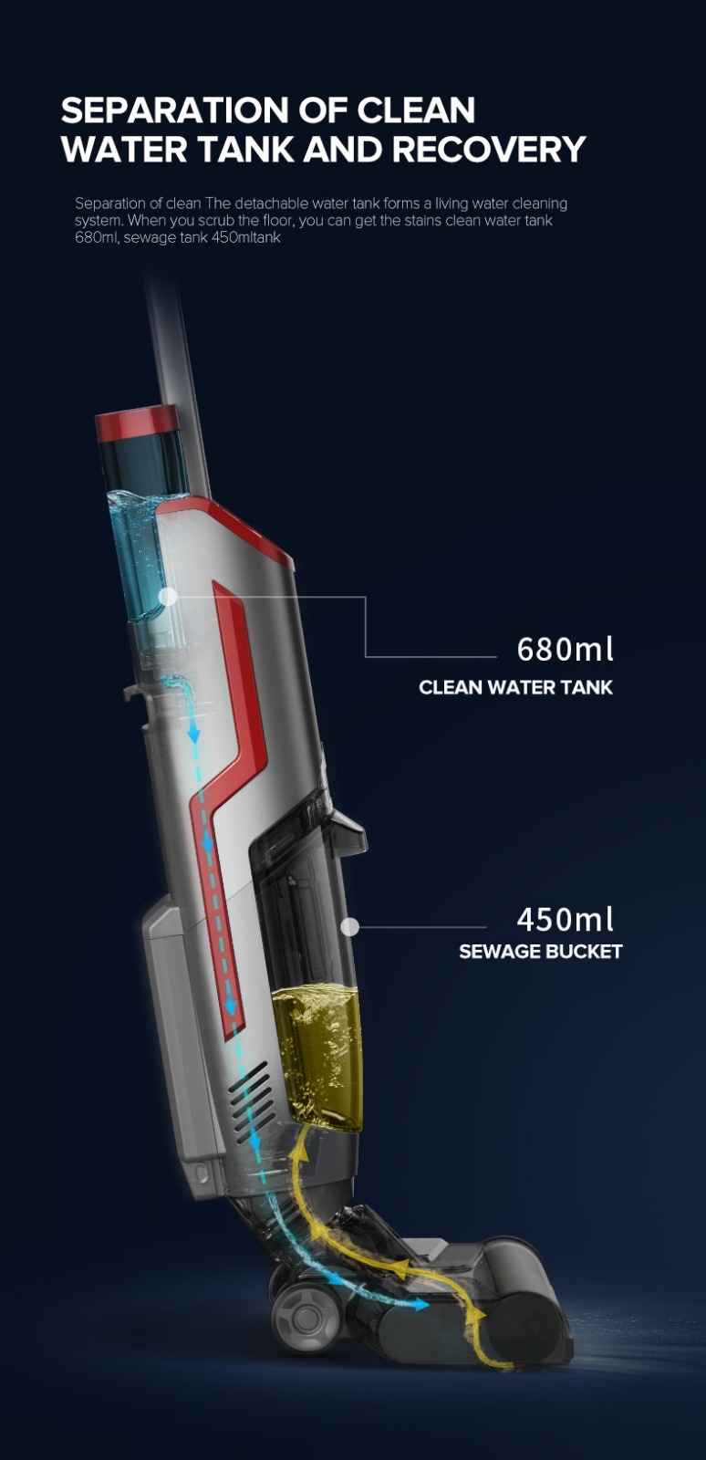 🔥淨水及污水雙獨立水箱,淨水洗地,擦完即刻自吸走污水,清污分離無污染