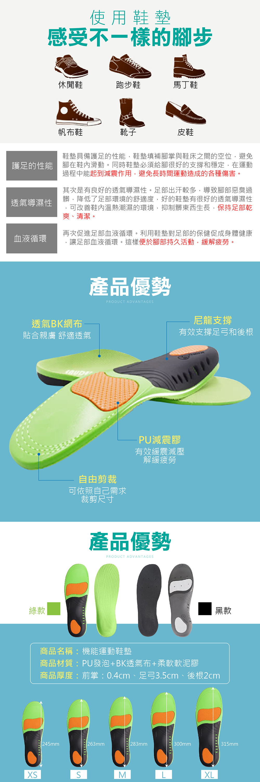 材質:彈性PU發泡+BK透氣布+柔軟凝膠