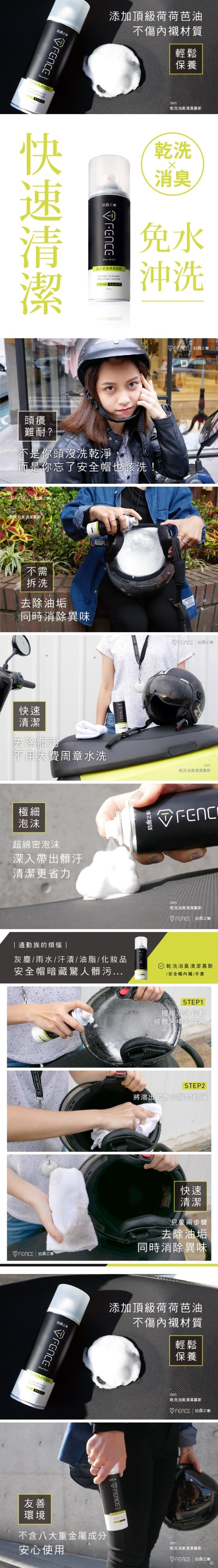T-FENCE防御工事安全帽乾洗消臭清潔慕斯TF-DE-DC25-0,洗淨髒污不用靠水沖,去味、清潔一招搞定!中性乾洗配方,採發泡式泡沫,自動中和髒污更給力!對於難以清潔、無法接觸水分的物品,簡單帶走髒污不傷它半分~更添加消臭劑,一併消滅惱人異味!