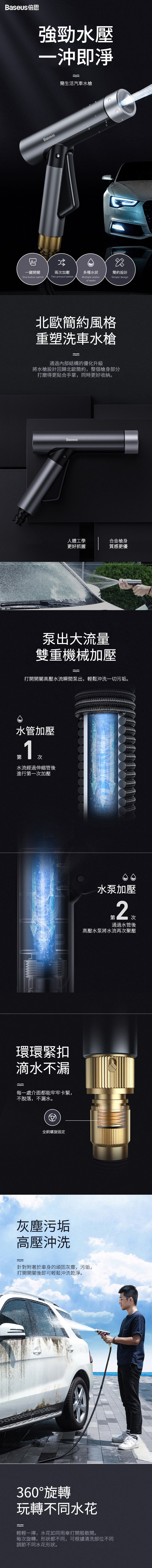BASEUS 高壓水洗車神器│金屬槍身│3款出水
