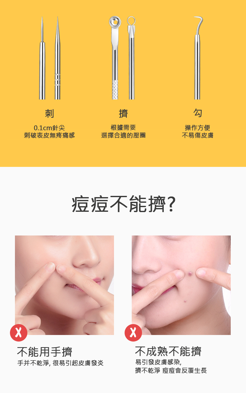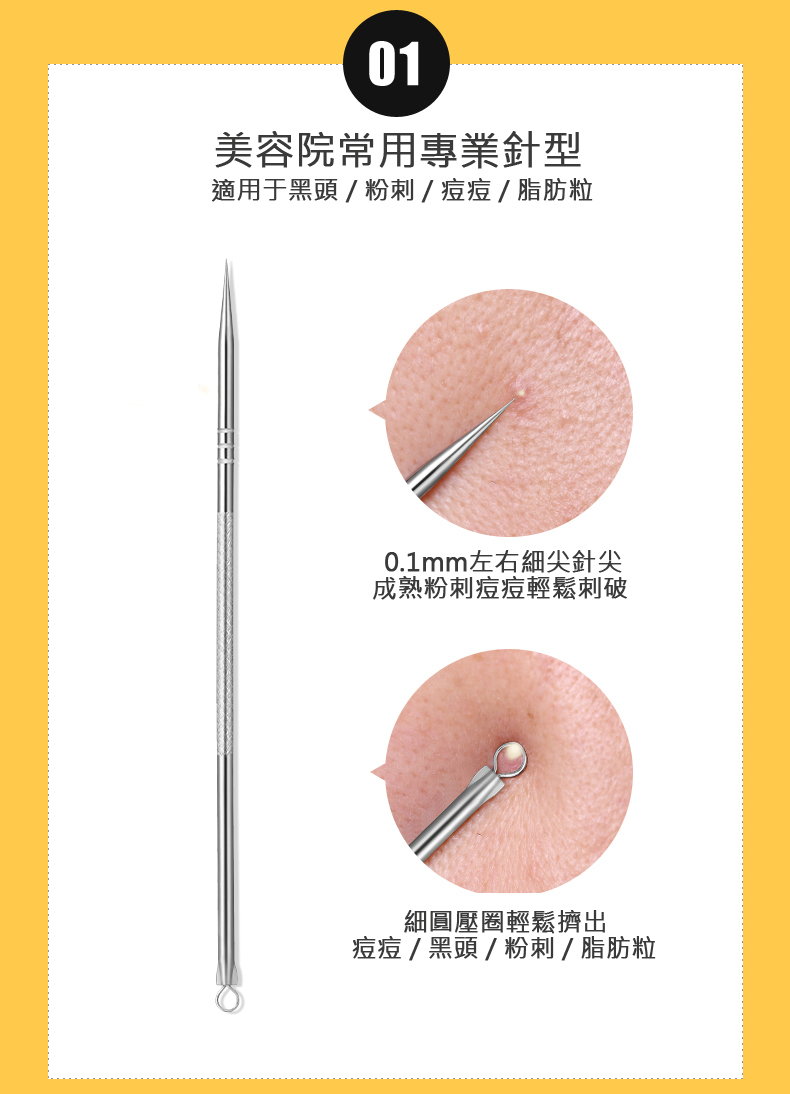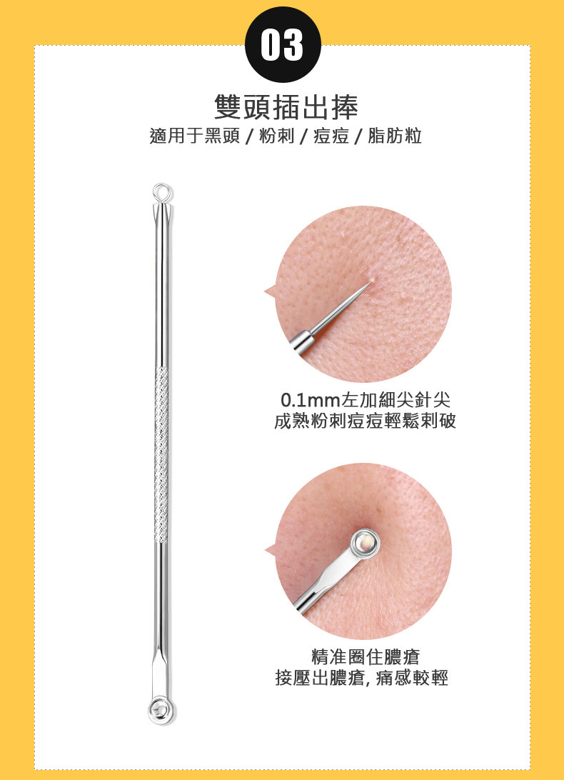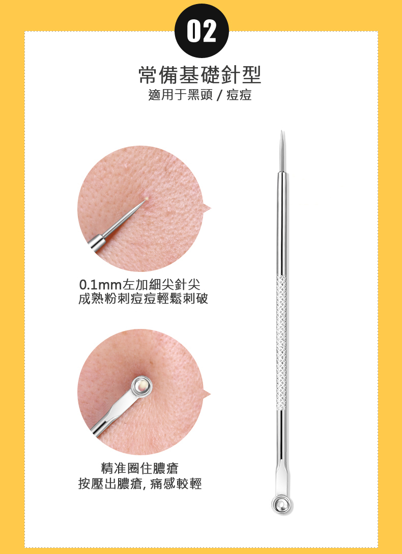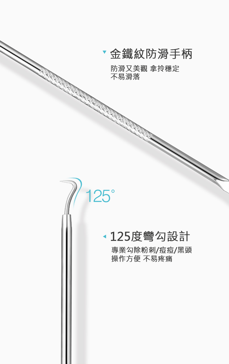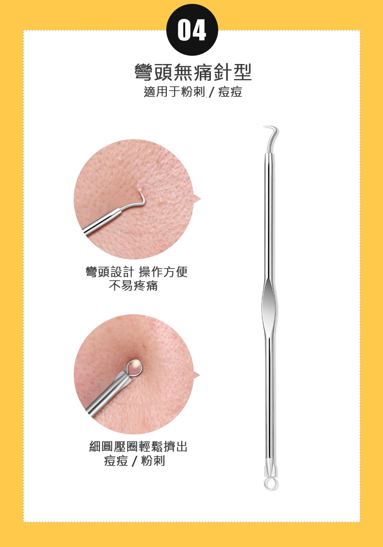 彎月型尖頭粉刺夾無論係頑固大條既粉刺定係細粒嘅黑頭都可以輕鬆無痛清除