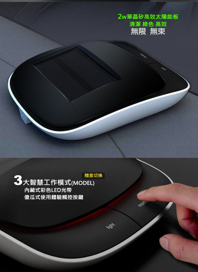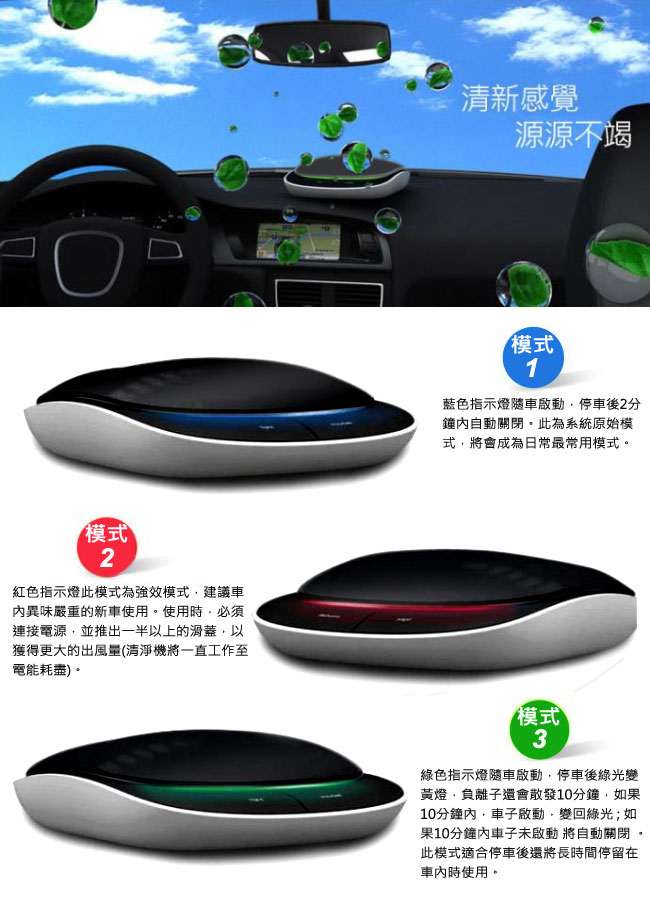 隨車震動傳感器,智能隨車啟動!提供1500萬負氧離子!光觸媒負離子淨化器,光觸媒作為催化劑,對大多數空氣污染有強效的分解作用,對大多數細菌、病毒有殺滅作用,只要不脫落,可長效作用,無需更換!
