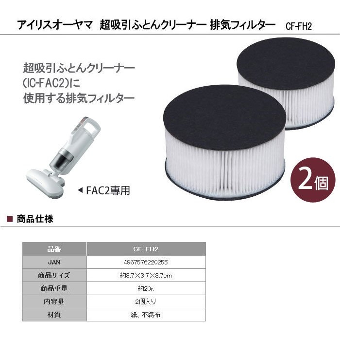 日本超輕除蟎吸塵器 IRIS OHYAMA IC-FAC2 專用隔塵濾網(2個) 更換裝