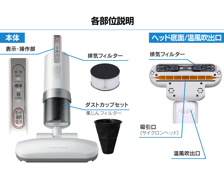 使用「可水洗式」集塵袋將拍打出的蟎蟲和有害健康的致敏原清除,並通過日本製過敏源濾網徹底淨化,雙重過濾,排出潔淨空氣,消除二次空氣污染。