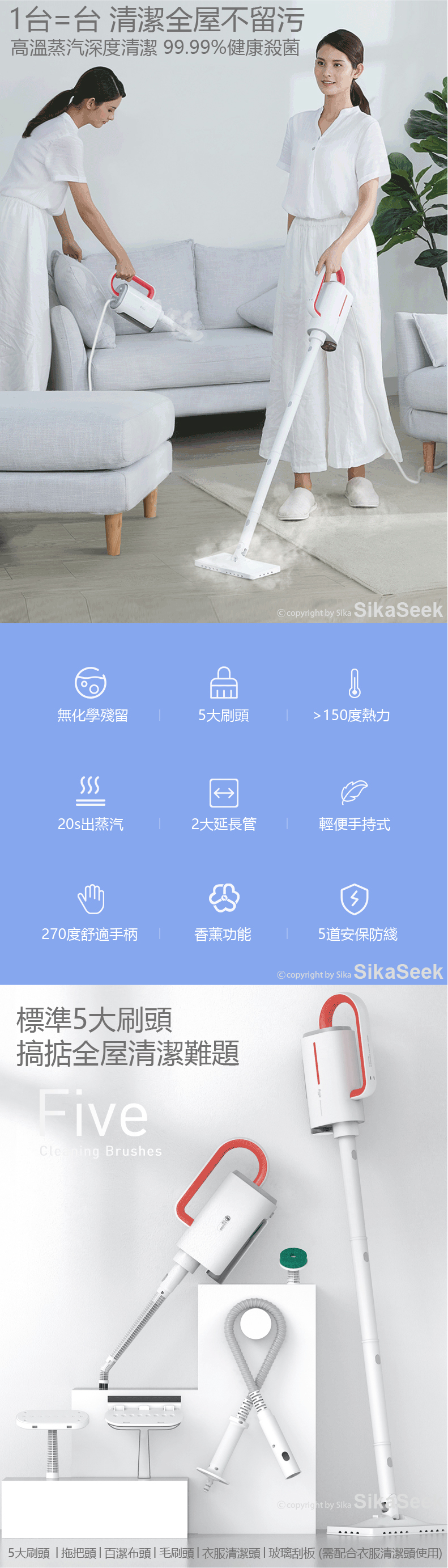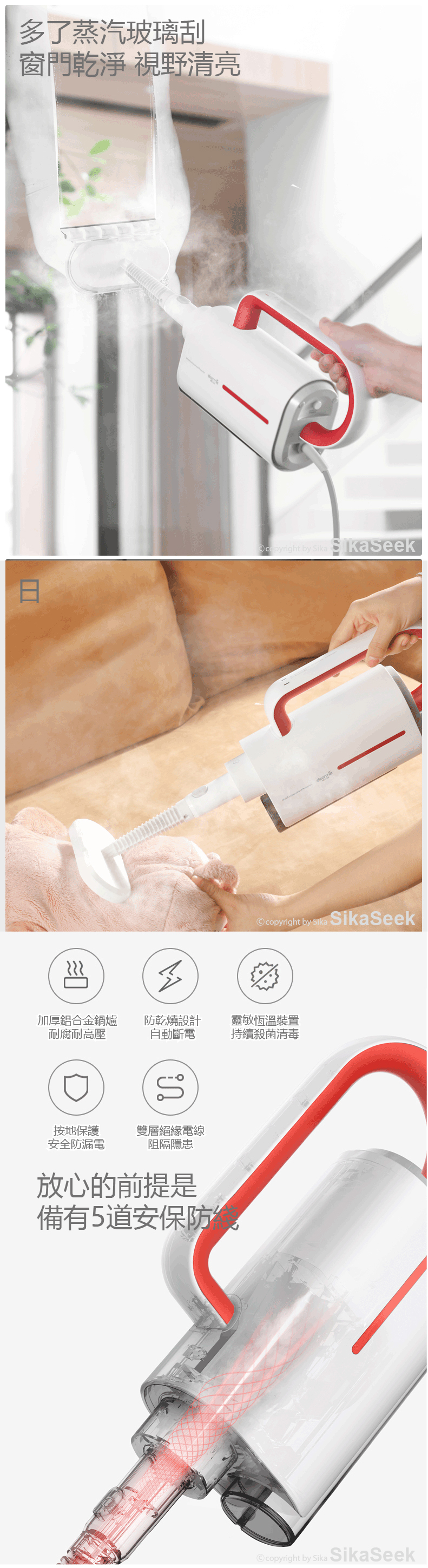 便攜式設計,20秒出蒸汽,溫度≥150℃,3bar壓力,可瓦解重油污、細菌等污漬,額定功率1600W