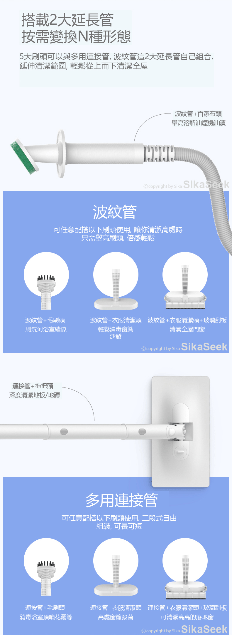 波紋管這2大延長管自己組合, 延伸清潔範圍, 輕鬆從上而下清潔全屋