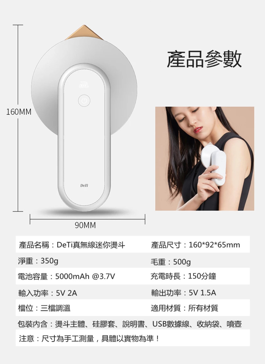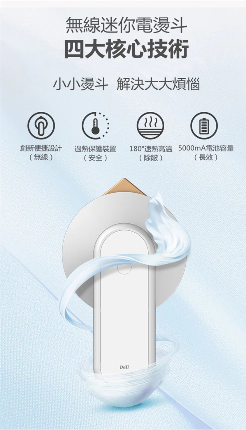 DeTi 無線迷你電燙斗│清潔床鋪│5000mA手機充電│旅行便攜│多用途