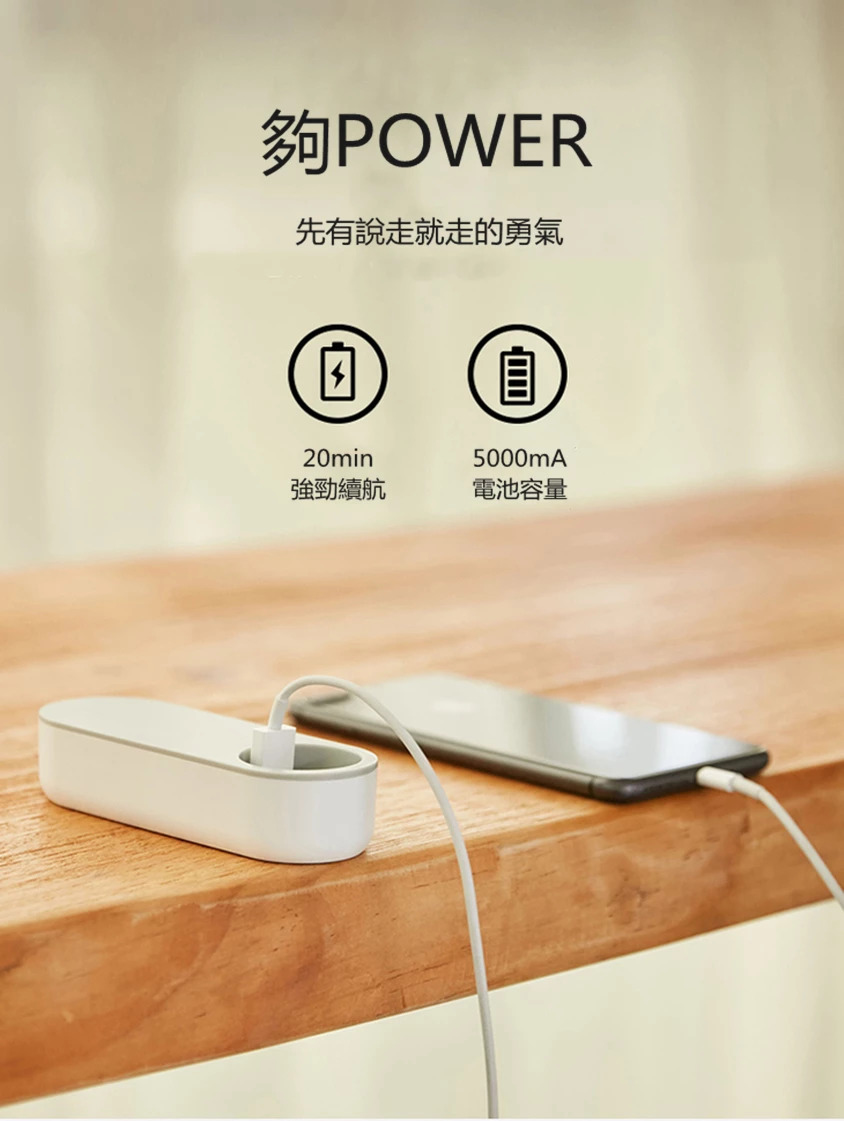 底座電量有5000mA,仲可以幫手機充機,一物多用。