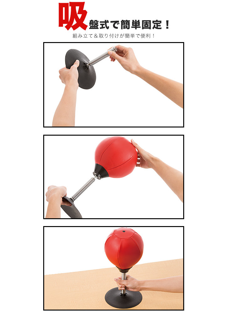• 只需把拳擊球吸盤固定在桌上,簡單又方便