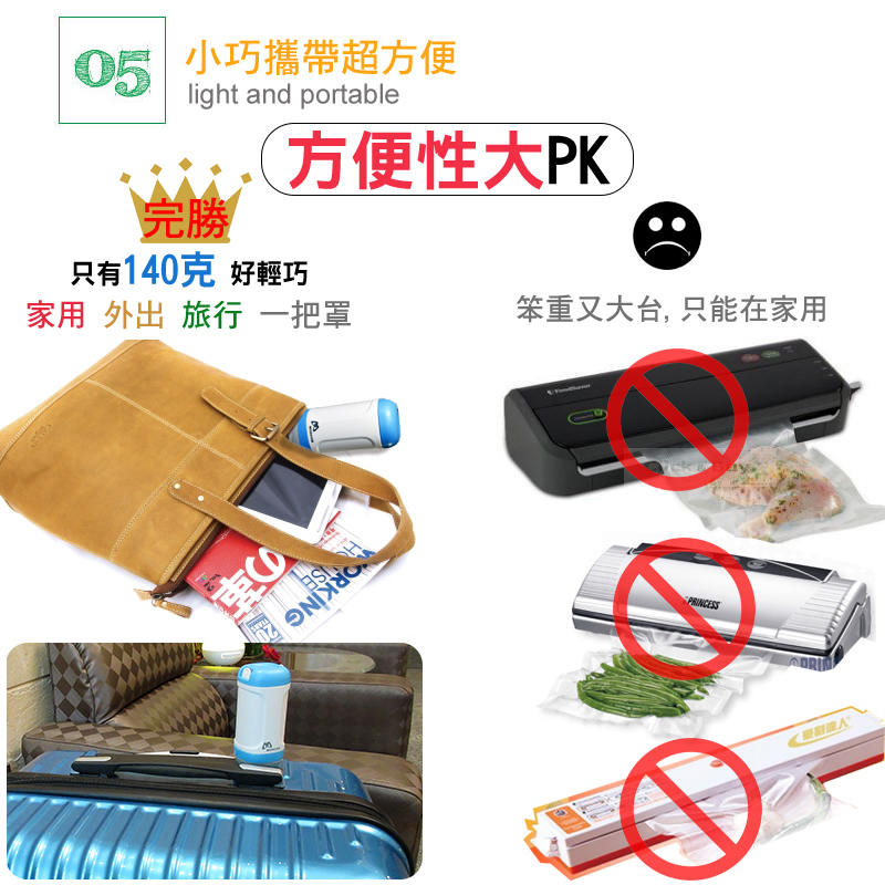 唔好睇阿【神泵】佢個子小小,就當佢無到,其實佢只需三粒電,就可以連汽水罐都可以壓縮到扁一扁,輕巧細少,但威力強大!加上又唔一定要用佢特定既真空袋,大部份既真空袋都岩用,真心抵買丫