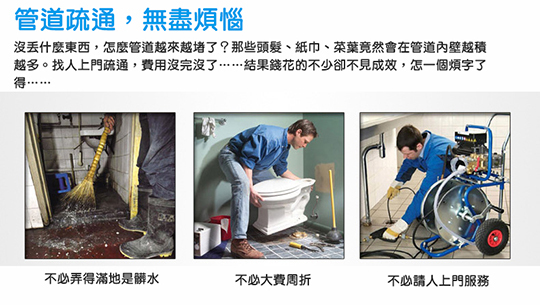 ★廚房或浴室的排水孔,以及馬桶等等經常被堵塞,找人來通,價貴又難找!★