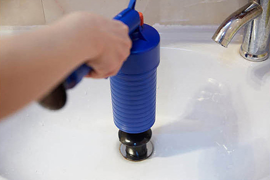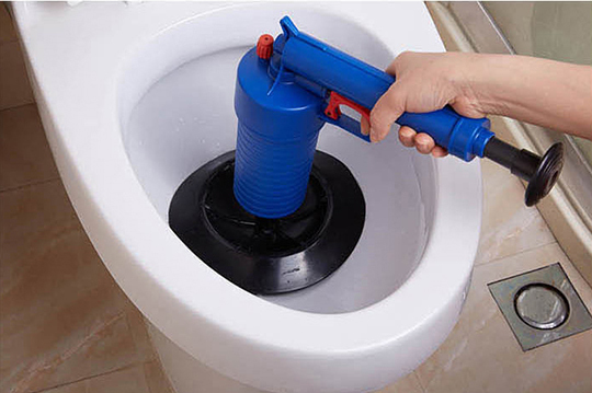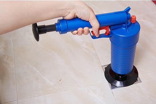 (3)將「堵嘴」緊緊撳壓住下水口,使其密閉,此時快速扣動扳機,打出氣流,管道中的堵塞物應隨之被推走。可反復操作此動作,以最終確認管道暢通,如果馬桶和管道內無水情況,可以適當加點熱開水讓管道熱脹冷縮,稍後進行操作。