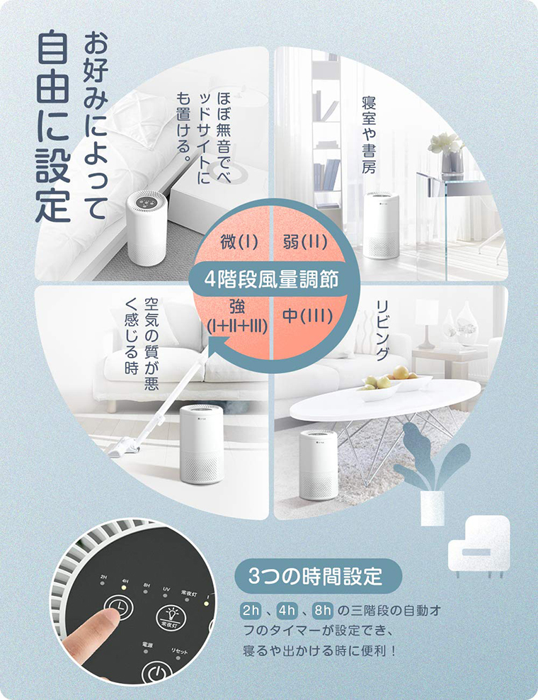 抗菌、除臭、除塵、省電、抗花粉、小夜燈設置嘅空氣清新機