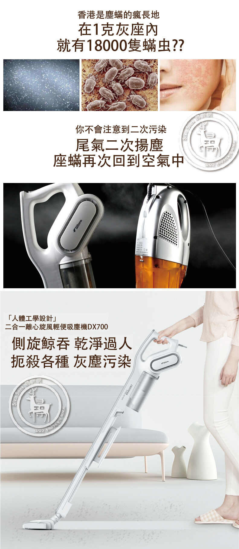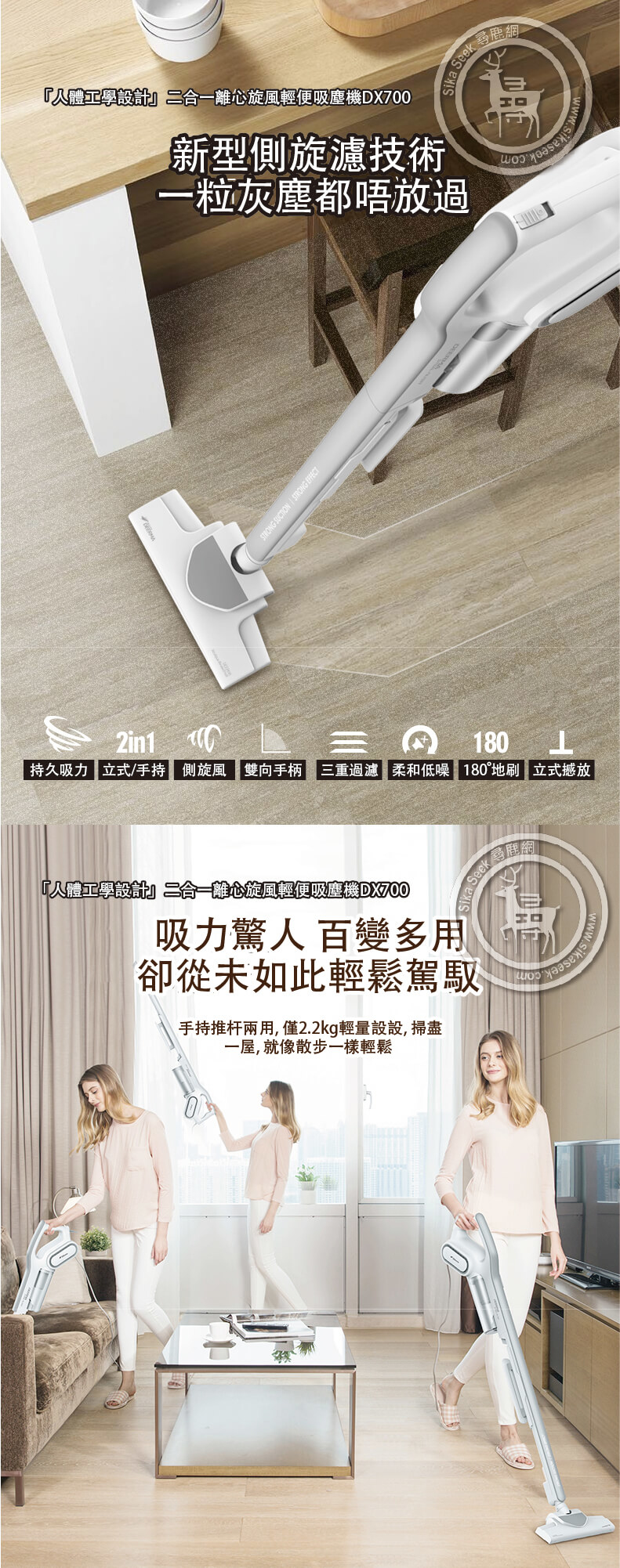 「人體工學設計」二合一離心旋風輕便吸塵機 DX700