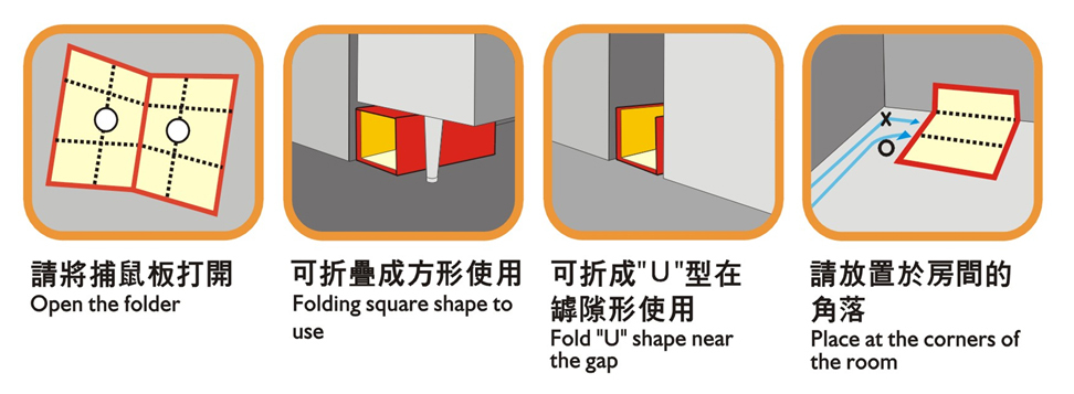 使用不含毒性的材料,適合家居,食堂及倉庫等不適宜擺放老鼠藥的地方使用