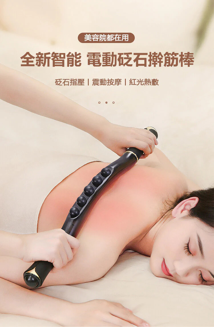 電動刮痧按摩擀筋棒│七秒無痛出痧│紅光熱敷理療│天然砭石點穴│手部、肩部、腿部、腹部全身可用