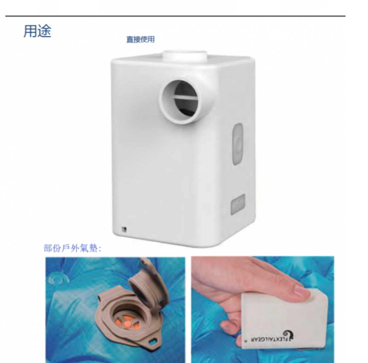 • 特製充氣咀,適合市面上不同充氣產品,如:地墊、浮床、水泡