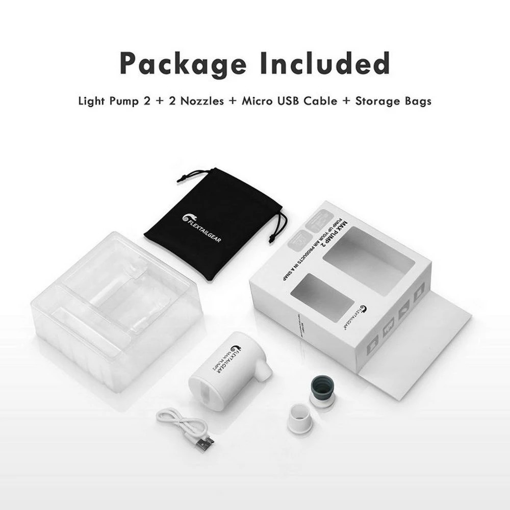 Flextailgear MAX PUMP 2是目前世界上最小的戶外Pump,方便您在戶外使用充氣產品,如:橡皮艇、游泳圈、氣墊等,同時擁有獨一無二的防水、應急電源功能。採用了輕量化設計,重量和體積只有傳統產品的20%,它可以輕鬆地裝進口袋或是背包內陪你去任何地方。獨一無二的可攜式電動Pump,專為戶外愛好者打造,量更強,續航力可達50分鐘,擺脫連接線和乾電池!助你輕鬆解決這些問題,讓你更享受出外時的美景美事。