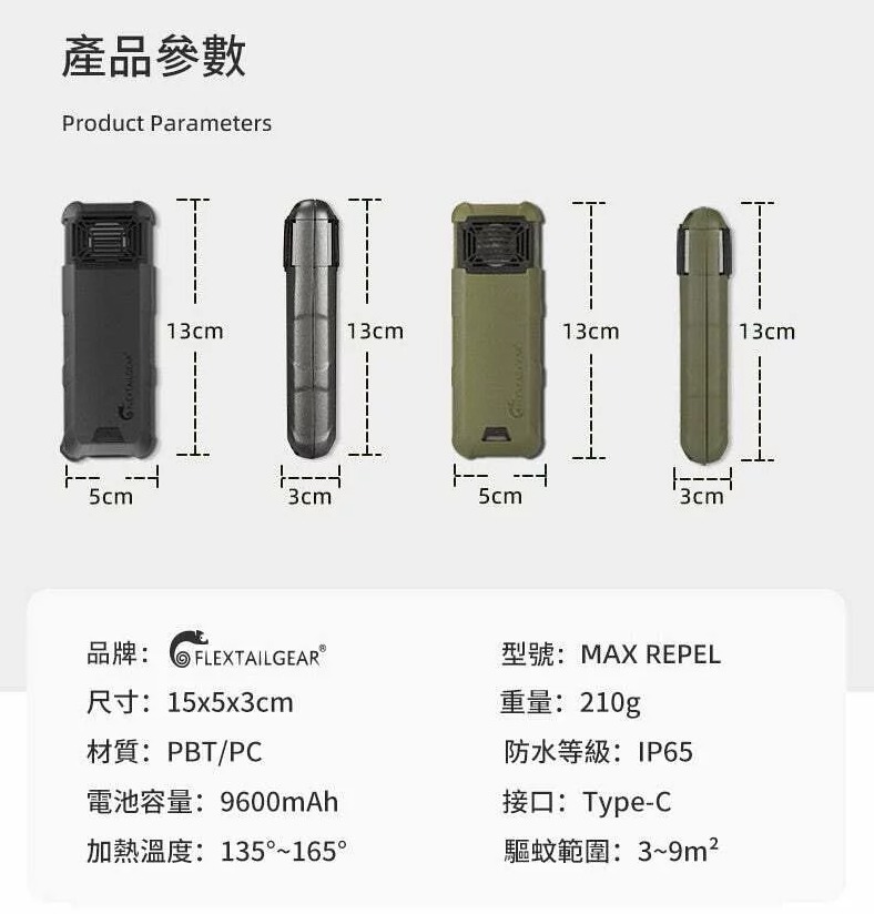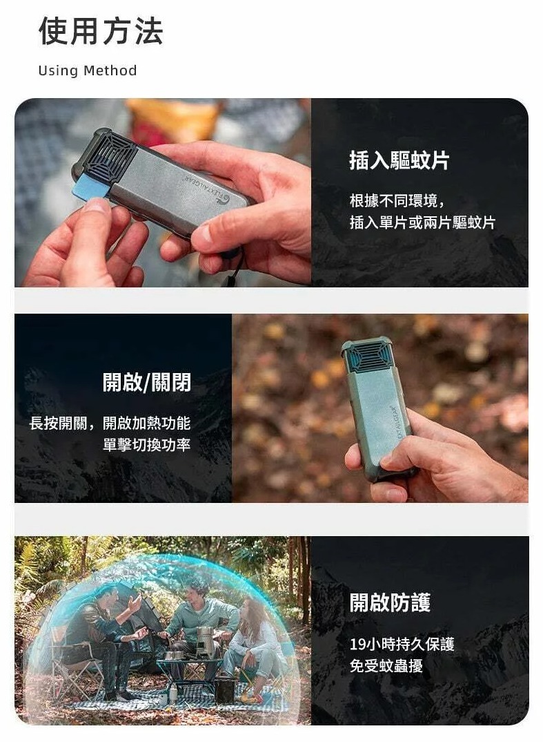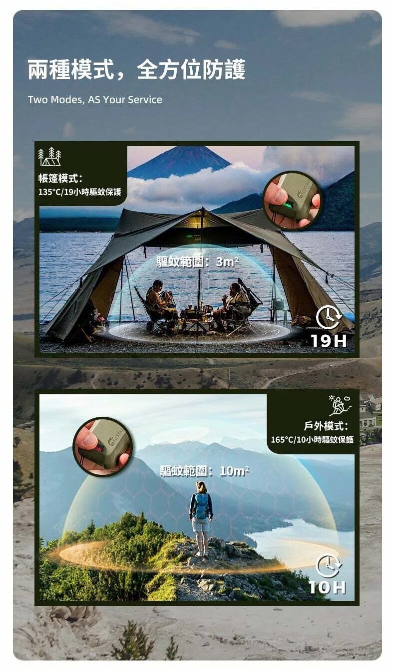 🔥戶外模式:165°C/10小時驅蚊保護