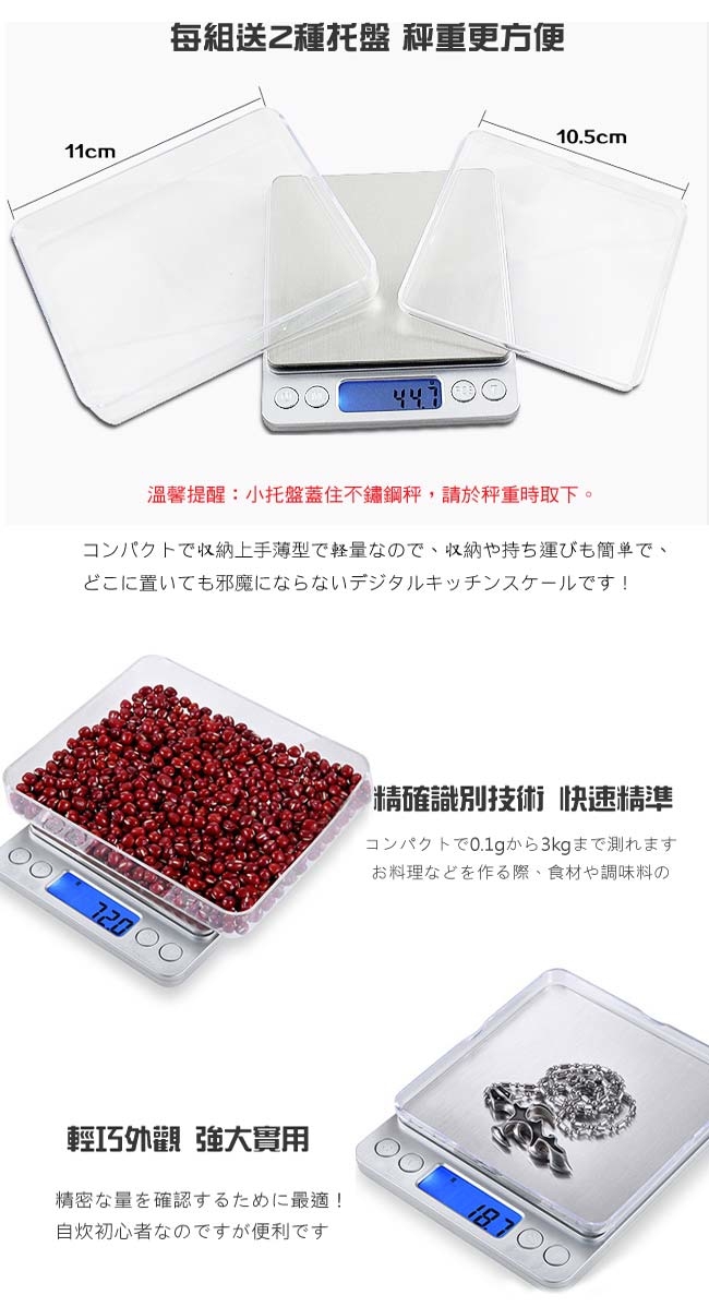每組附送2種托盤,可以測量更大更多既物品,測量後直接使用,夠晒方便!