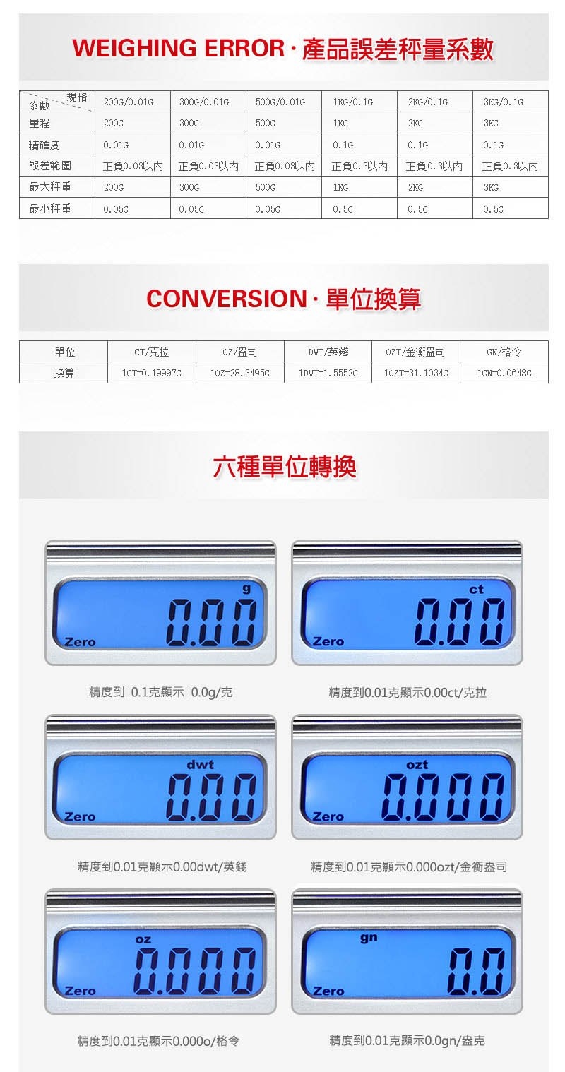 最輕計量可以準確到0.01克,最重計量可大至 3KG,無論麵粉、奶粉、藥材通通都無難度!