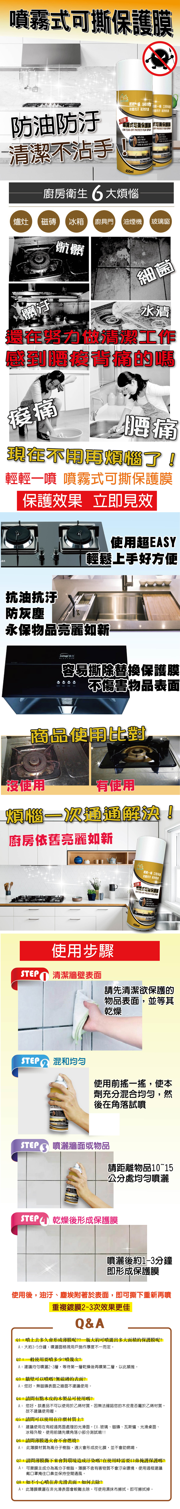台灣製 噴霧式防油防汙可撕保護膜 450ml|可撕除的防銹│抗污產品