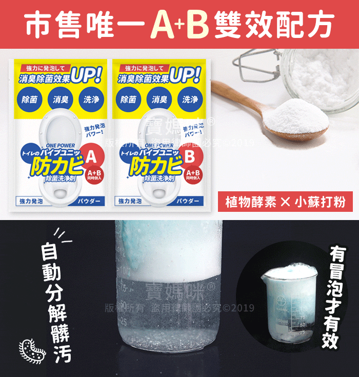 台灣One Power強力雙效配方清潔泡沫炸彈粉│強力清潔沉積污漬、深層抗菌│光亮成分、去汙活性酵素雙重作用