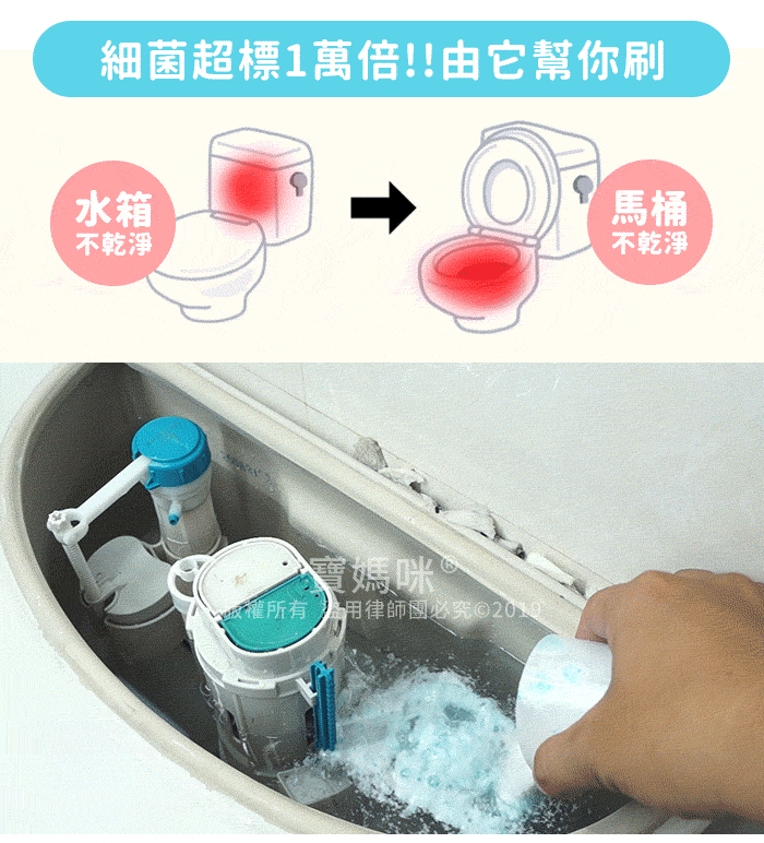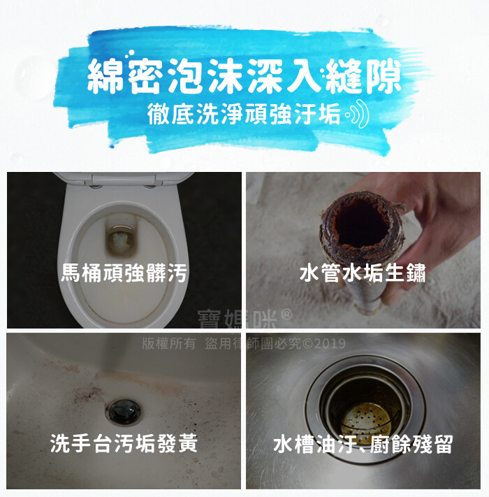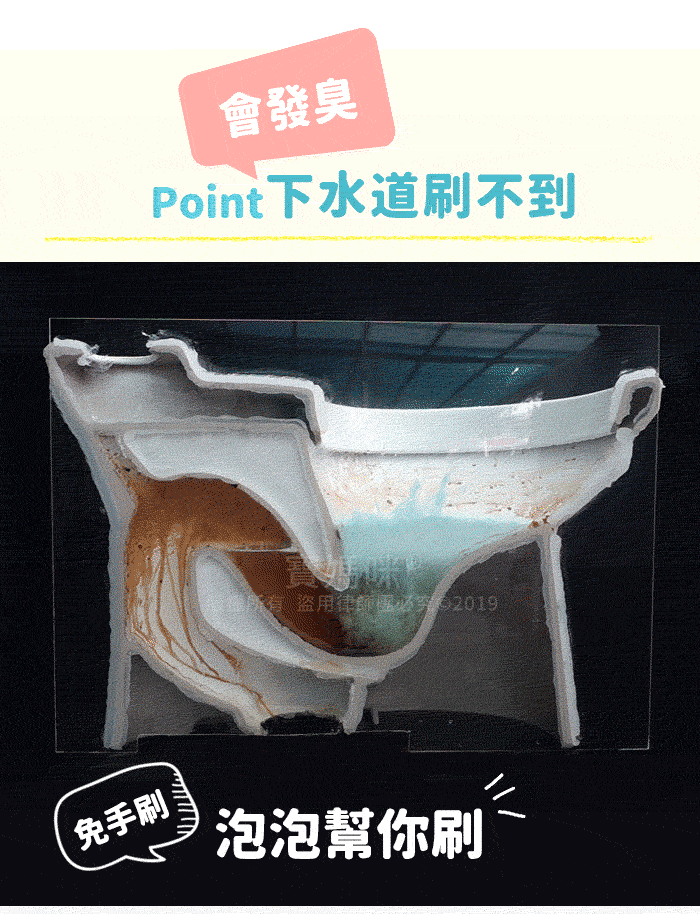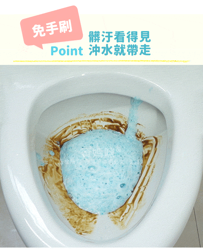 ※靜置1-2小時後,泡沫會咬住髒污,如遇較大型馬桶,倒入後加水讓泡沫膨脹到頂。