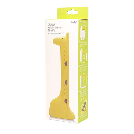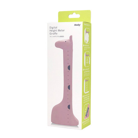 垂直な壁にキリンの底面をピタリとくっつけて身長の基準をつくり、後はボタンを押すだけ。 「ピッピ」とたった3秒で計測完了。首の部分の液晶画面に身長が表示されます。 |