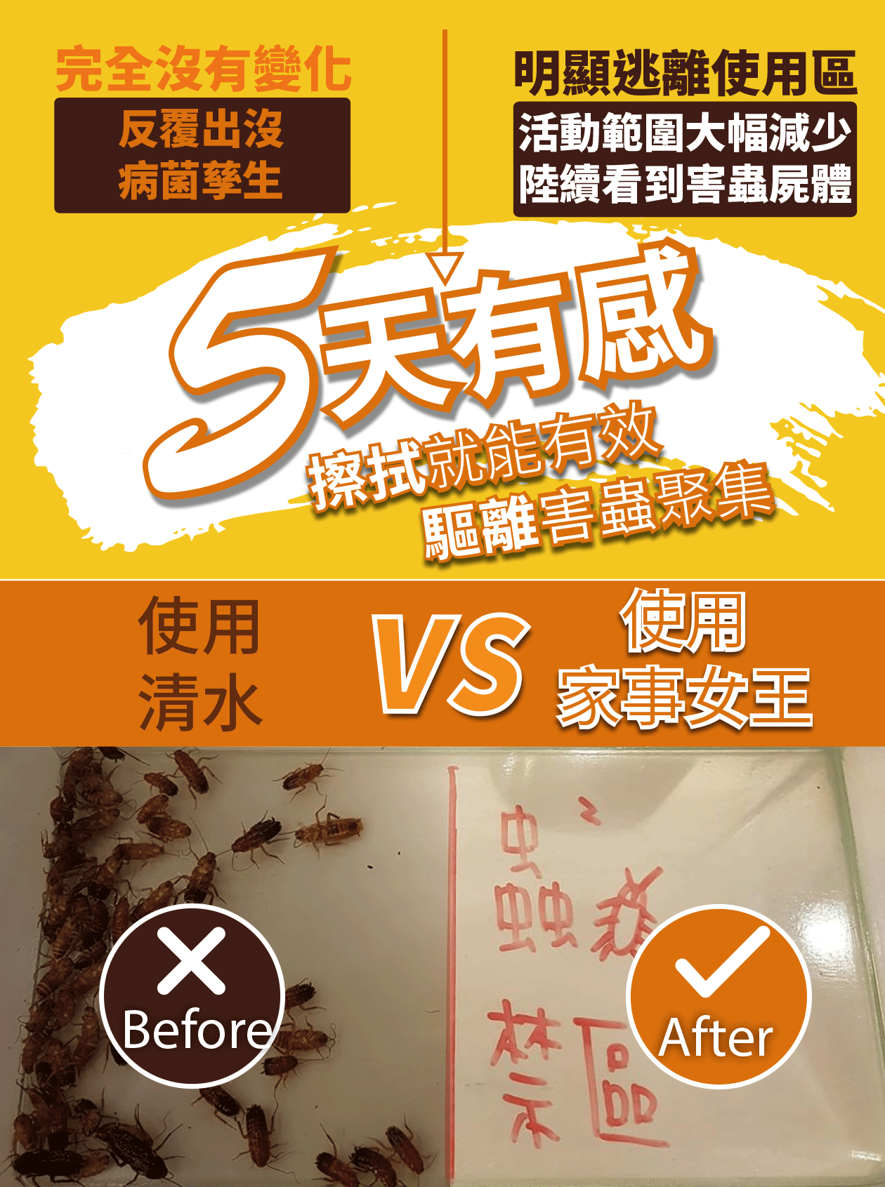 「蟑螂、螞蟻、跳蚤通通不見了!」