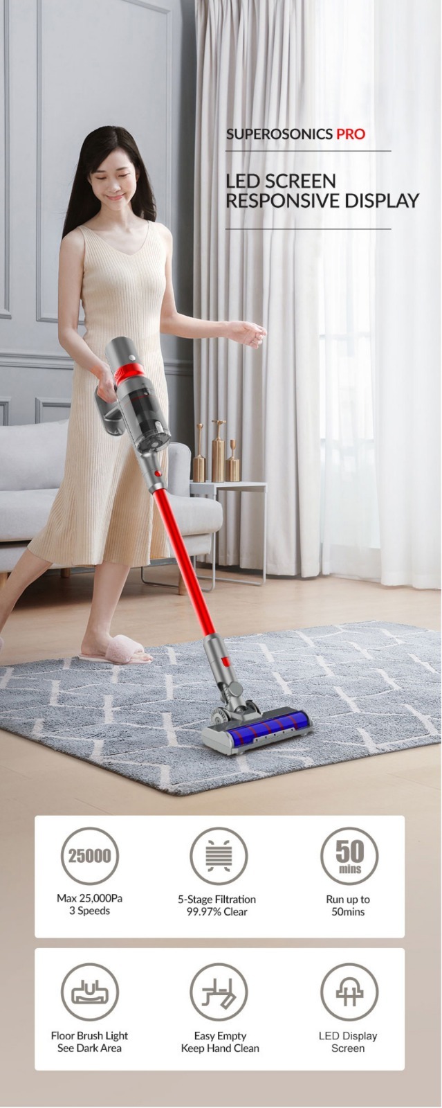 「性價比之王 親民版V10」AIRBOT Supersonics Plus 25000Pa 強力無線吸塵機+電動除塵蟎吸頭+濕拖消毒水箱│1/4價錢,即可享用媲美Dyson V10既清潔吸│香港行貨 1年保養