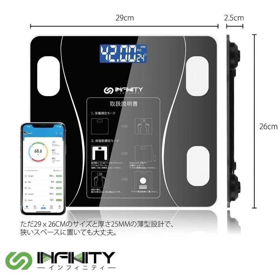 Infinity 健身智能電子磅 WM20│OKOK APP人體成分儀│12種身體成分分析│香港行貨