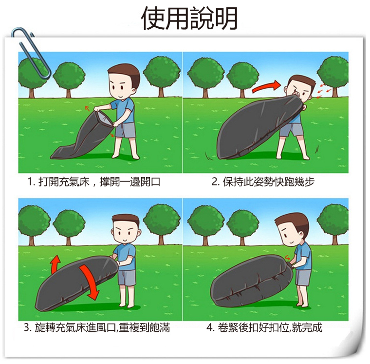 尺寸: 250cm(260cm) x 72cm (含封口處的充氣前尺寸)