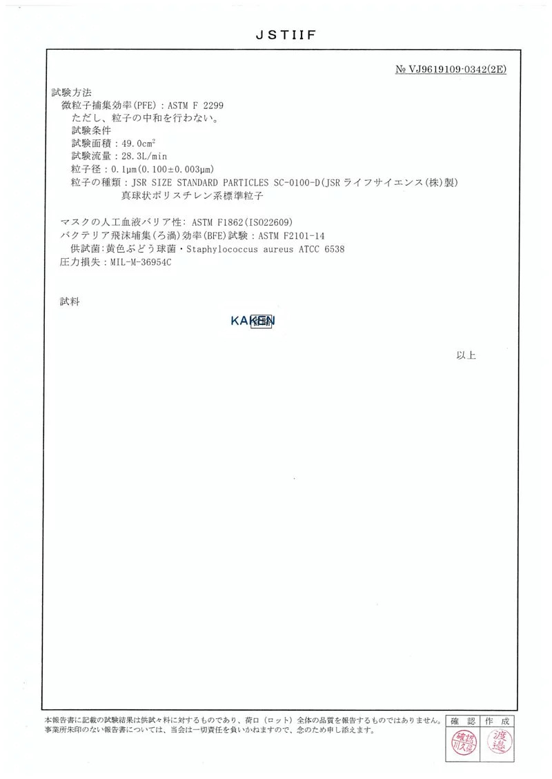 中層:國際認證機構認證的進口濾布,BFE> 99%,PFE>99%