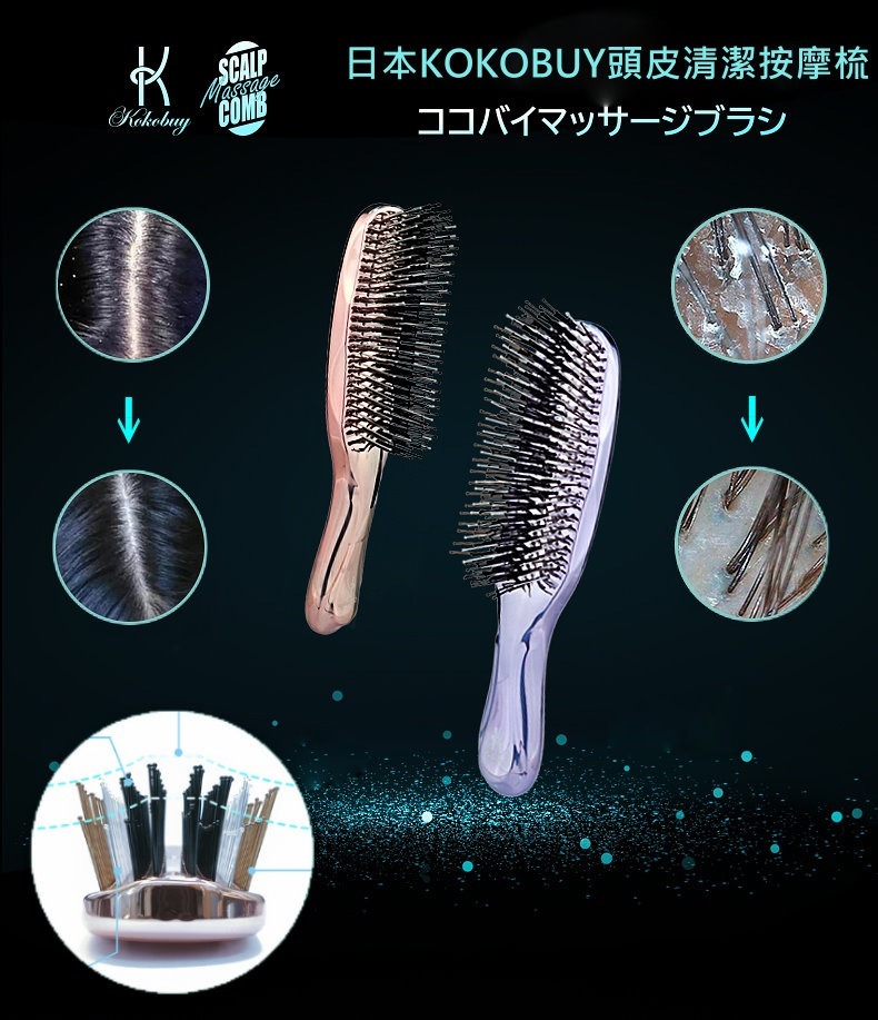日本KOKOBUY頭皮清潔按摩梳│按摩及清潔頭皮│角質護理│激活毛囊│有效促進頭皮毛囊活性│