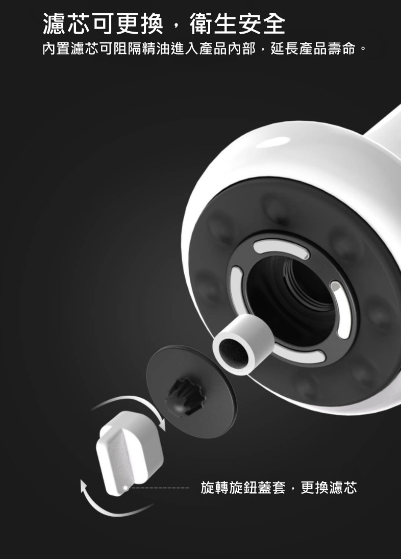 🔹主機* 1,精油* 1,旋鈕蓋套* 1,濾芯* 3,大密封圈* 3,小密封圈* 5,Type-C USB線x1