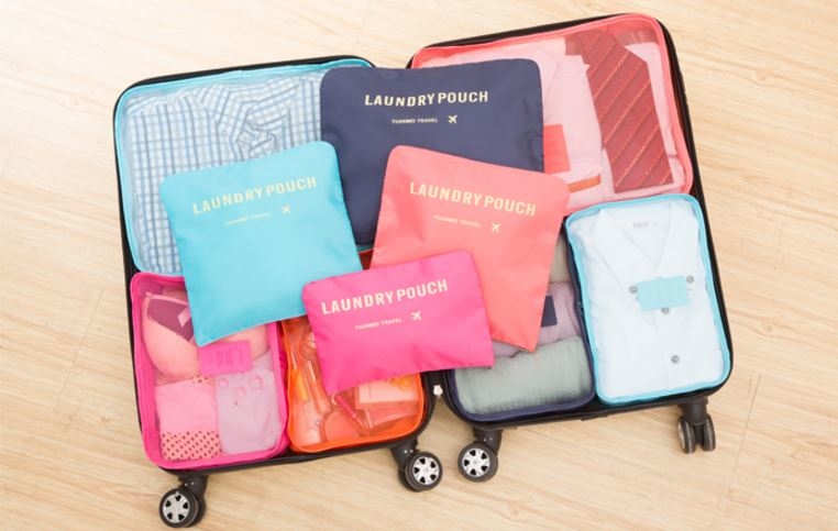 行李箱內的物品亂糟糟,瓶瓶罐罐忘東忘西,這樣怎麼會玩得開心的,行李收納,就拿出收納6件套組吧!
