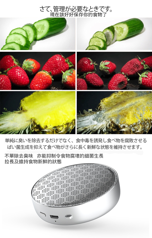 • 99.9% 殺滅空氣中細菌,並可去除食物中會引致毒素的源頭,將食物保鮮