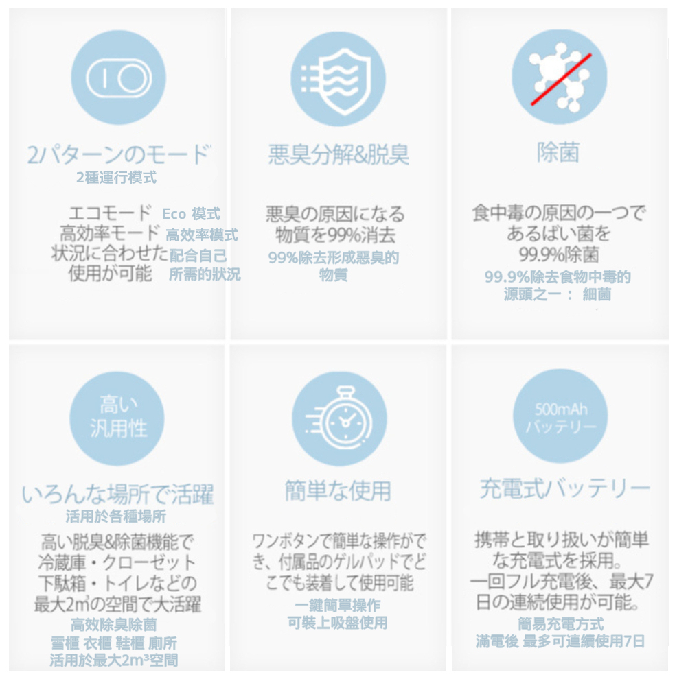 • 放置在雪櫃、廚櫃、廚房、洗手間中使用,殺菌兼去除異味一舉兩得