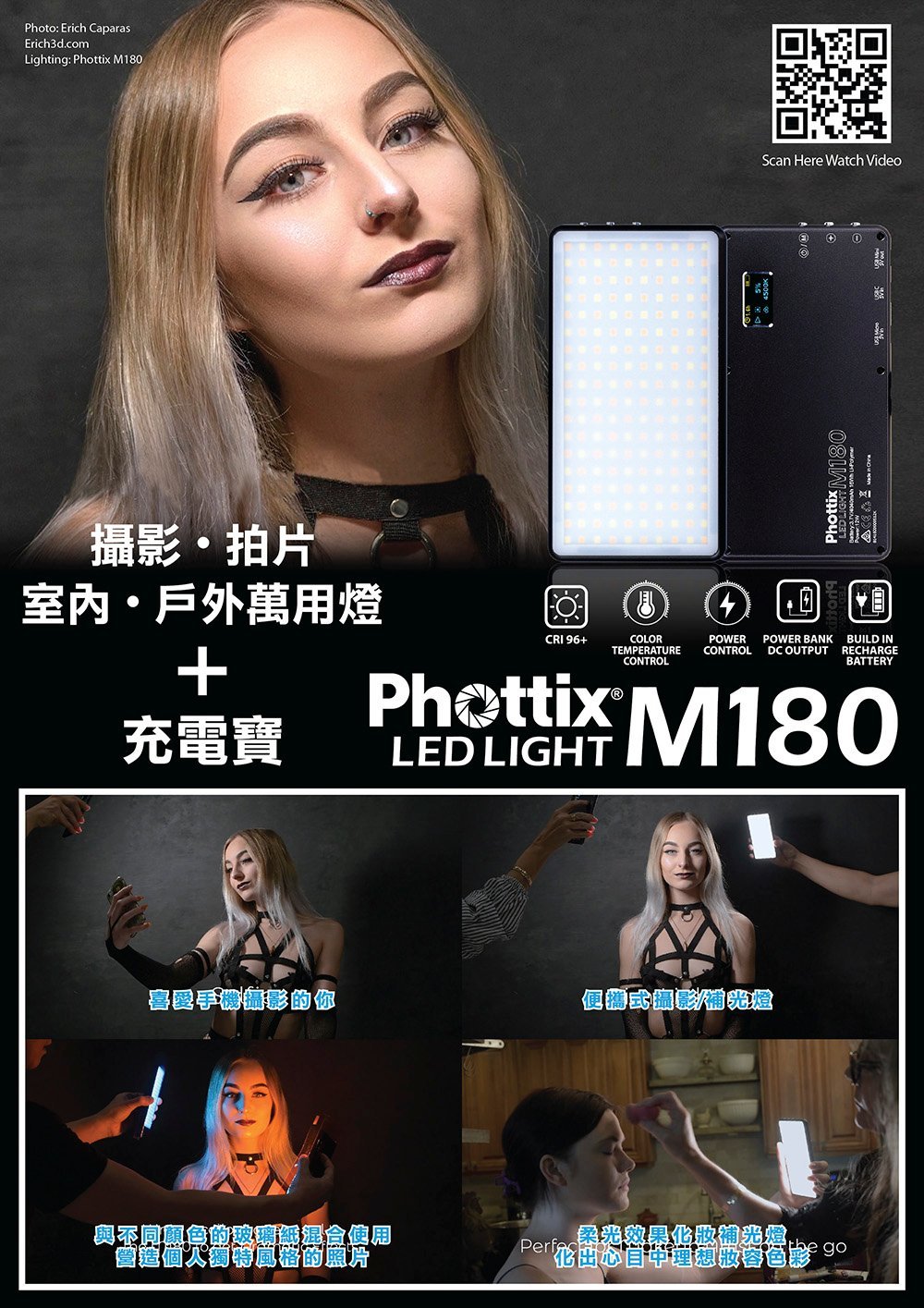 不要小看 M180 手提流動攝影燈的照明功能,細小照明面板安裝了 180 顆 CRI 96+ 高亮度燈珠,1600Lux 高亮度輸出,具備 3200K~5600K 大範圍雙色溫調節(±300K)、5-100% 輸出調節 (±5%)、100% 輸出時達到 12W 功率,真實還原拍攝對象的自然色彩,拍攝出具有個人風格的照片。