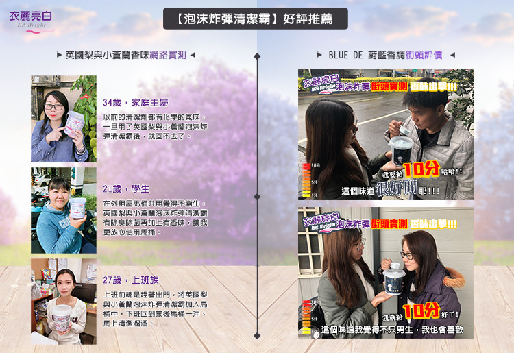 • 上班前趕著出門沒關係,將泡沫炸彈清潔霸加入馬桶中,下班回到家後馬桶一沖,清潔溜溜,泡沫炸彈清潔霸將會是您的完美管家!