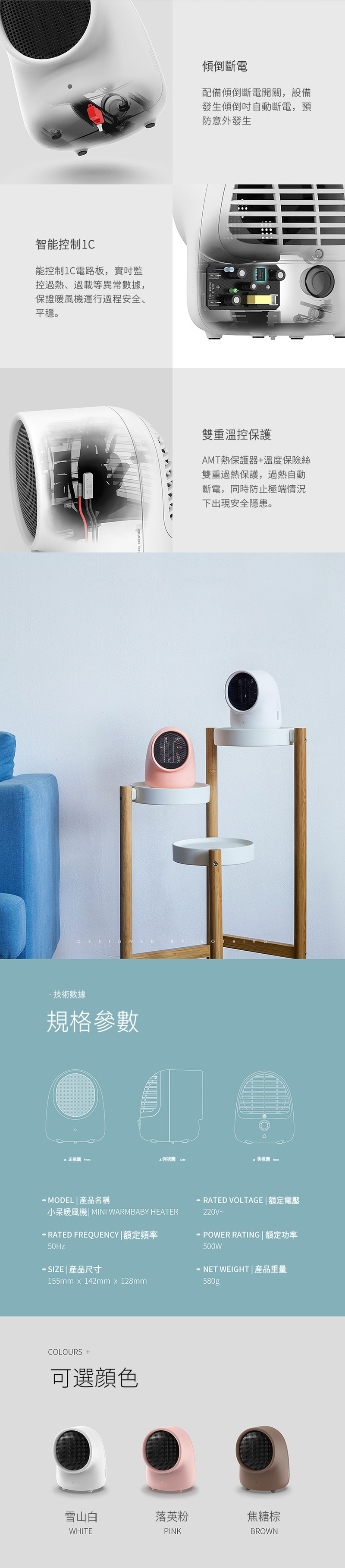 MINI 暖風機機身輕巧,唔似一般傳統暖風機一大座,俾你放上檯面,暖住手用電腦!