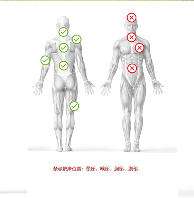❌不建議按摩位置: 頭部丶喉部丶胸部丶腹部 .