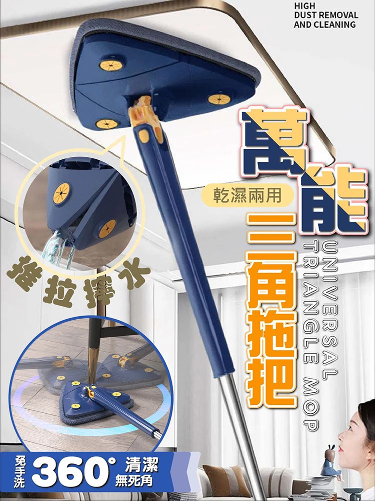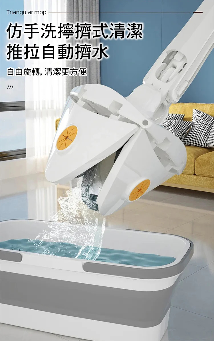 免手洗乾濕兩用三角清潔拖把 顏色隨機出貨