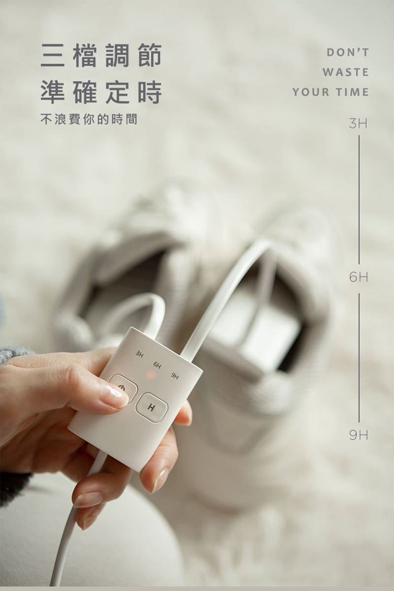 2. 暖鞋器有三個設定的時間,分別是3小時、6小時和9小時,單擊定時按鍵選定工作時間。 (以此循環操作)