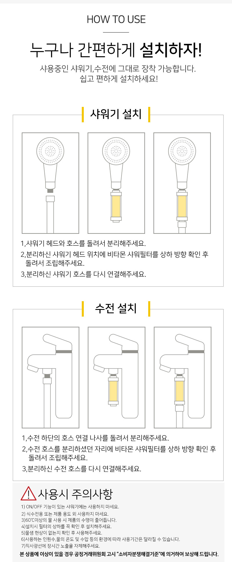 • 只需將過濾器扭進標準的花灑頭及水管上便可使用,簡單方便快捷