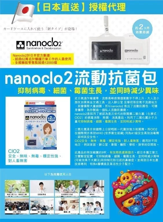 *為響應環保和減省不必要的支出,建議重購時請選擇「Nanoclo2-流動抗菌包-補充裝」